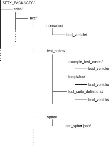 The Adaptive Cruise Control (ACC) Lead vehicle library components are located in $FTX_PACKAGES/adas/acc/scenarios/lead_vehicle as shown in Figure 1.