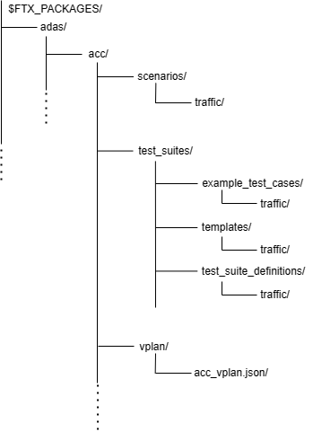 The Adaptive Cruise Control (ACC) traffic library components are located in $FTX_PACKAGES/adas/acc/scenarios/traffic as shown in Figure 1.