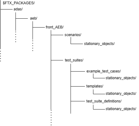 The Front Autonomous Emergency Braking (AEB) stationary objects library components are located in $FTX_PACKAGES/adas/aeb/front_AEB/scenarios/stationary_objects as shown in Figure 1.