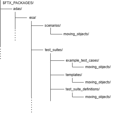 The Emergency Steering Assist (ESA) moving objects library components are located in $FTX_PACKAGES/adas/esa/scenarios/moving_objects as shown in Figure 1.