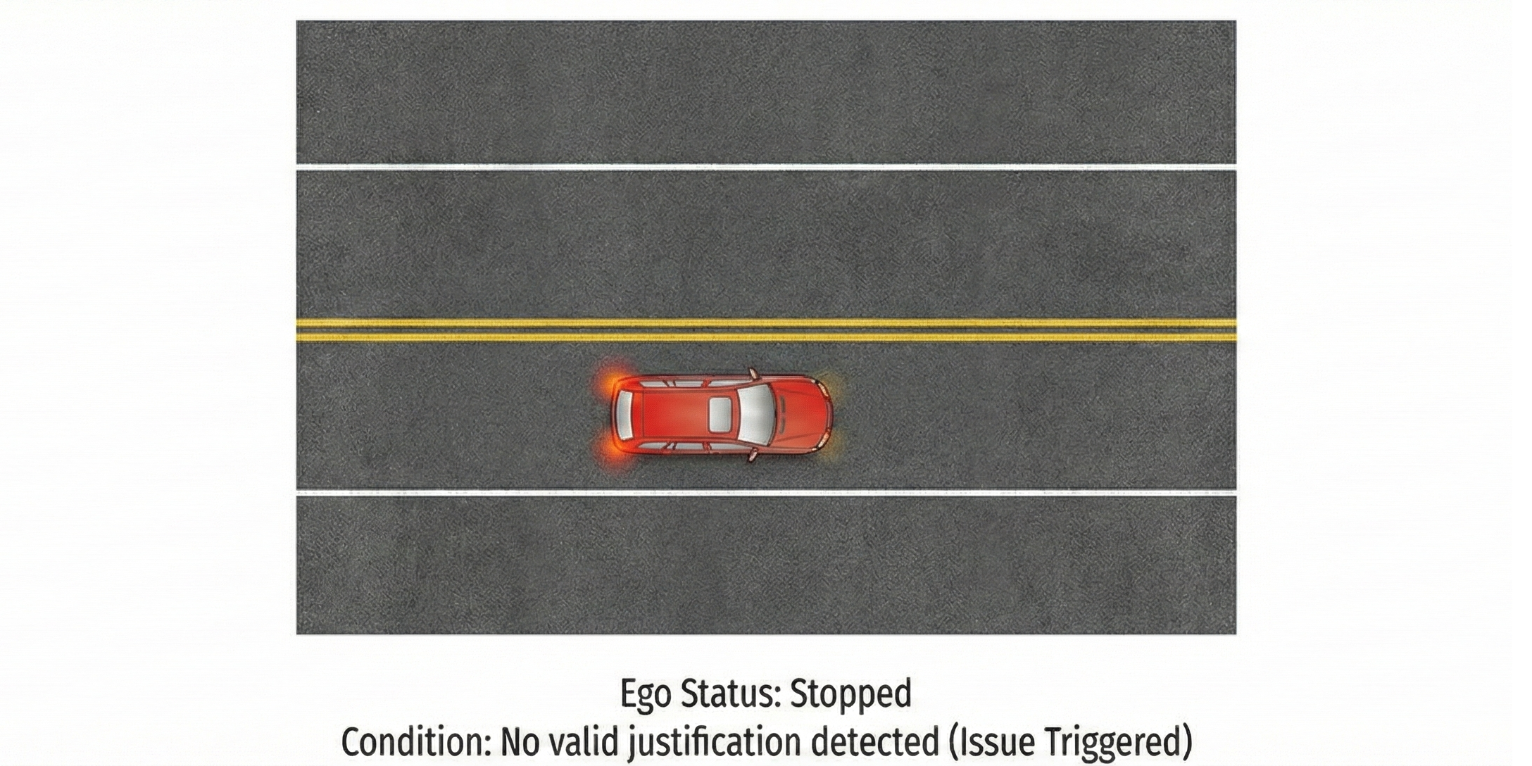 It flags situations where the vehicle hesitates, becomes stuck, or slows down unnecessarily, even though it is safe and appropriate to continue driving. This helps detect issues in autonomous driving systems, such as excessive caution or failure to proceed, which can disrupt traffic flow.
