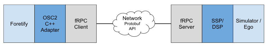 Foretify's communication with the SSP and DSP is based on Google's Protobuf serialization mechanism. Messages are transmitted using the fRPC library provided by Foretellix.