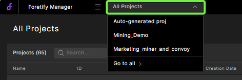 Select the Projects dropdown list and select a project.