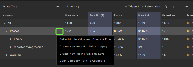 In the Triage view, go to the Clusters pane, click the three dots (⋯) next to a cluster, and select Set Attribute Value and Create a Rule.