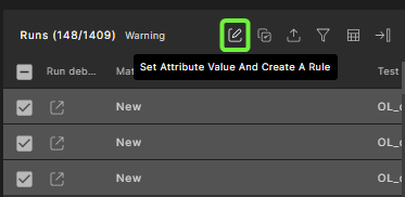 Select one or more runs, and then click the Set Attribute Value And Create A Rule icon located at the top right corner of the Runs table.