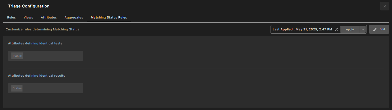 This configuration is available in the Foretify Manager UI under Triage > Configuration > Matching Status Rules.