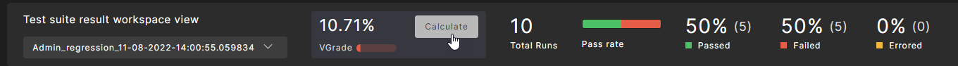 To calculate the VGrade after changing the active test suite result in a workspace, click Calculate next to the VGrade.
