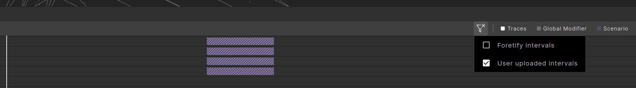 To filter user-uploaded intervals, click the filter icon, check User uploaded intervals, and uncheck Foretify intervals, as shown in the image below.
