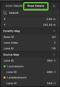 - S/T: Represents the longitudinal (S) and lateral (T) offset from the lane reference line, in Foretify map (MSP) coordinates.