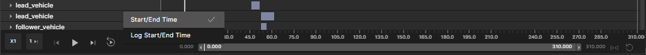 When debugging a run that is part of a split real-world drive, you can view the simulation time in two modes:
