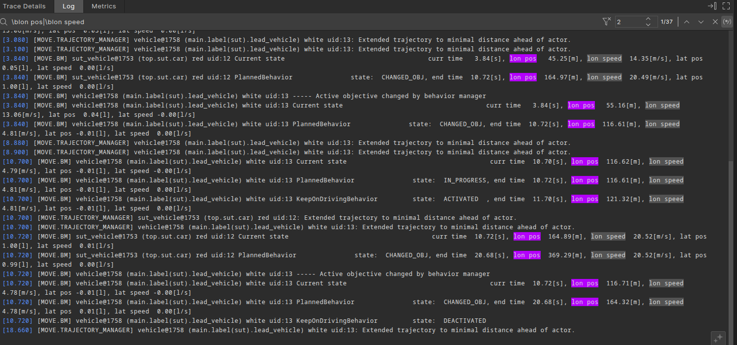 - Behavior Stack Priority: Traces the driver behavior state. See View Behavior Stack Priority.