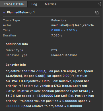 In the Actor Details, you can view scenario status information that traces the internal state of an actor at a specific point in time.