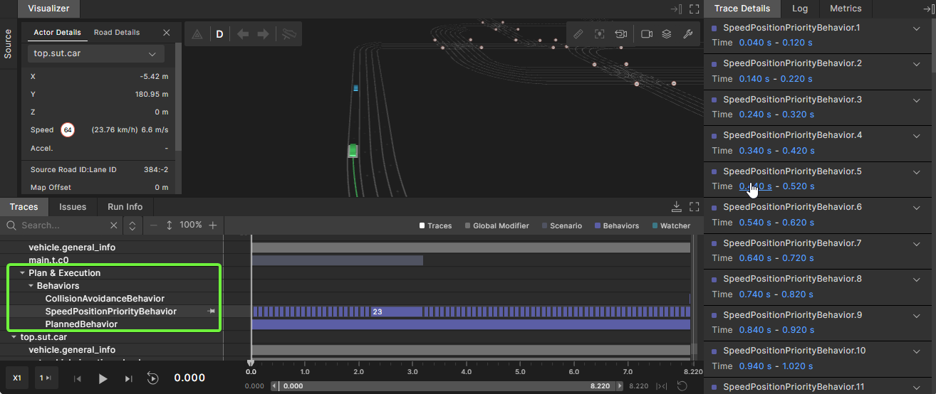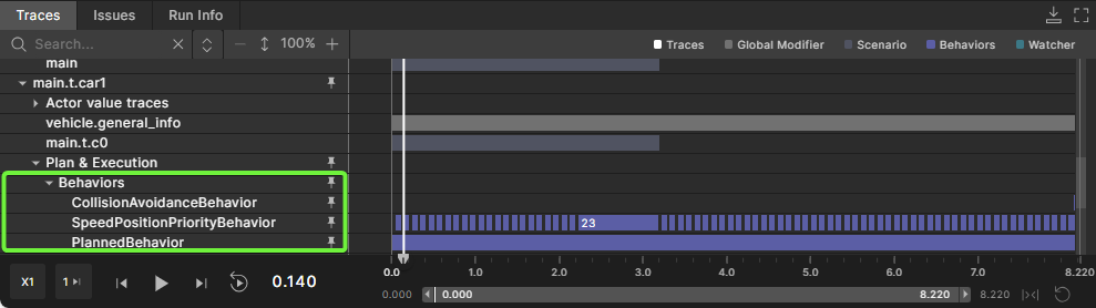 | SpeedPositionPriorityBehavior | Ensures that actors will follow the plan in the best way possible according to the scenario writer’s priorities. |
