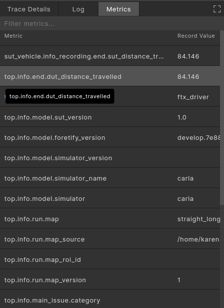 Notice that some of the metrics are displayed with buckets. Buckets are generated during Foretify runs based on coverage metrics defined in OSC2 code.