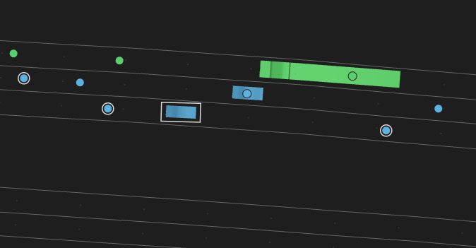 If the time pointer is not inside the time range, a short white line appears on the time range to indicate where the time pointer is.