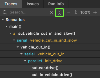 Foretify has predefined, global checkers that report an issue if an actor (usually the SUT or another vehicle) did not behave as expected during a run. In addition, Foretify arranges all issues by category and severity type, displaying the issue with the greatest severity at the end of the run.