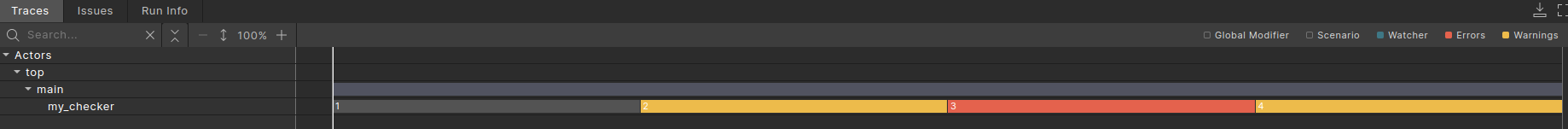 - Scenario Status: Traces the internal state of an actor. See View Scenario Status.