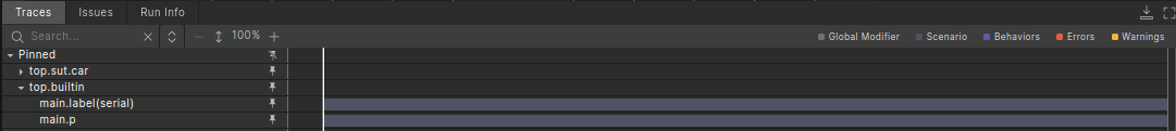 - The Traces view displays the values of the traced parameters, as well as intervals—visualizations that represent abstract data over a time span. See Debugging in Traces view.