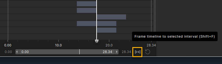 Click the Frame timeline to selected interval icon to the right of the timeline.