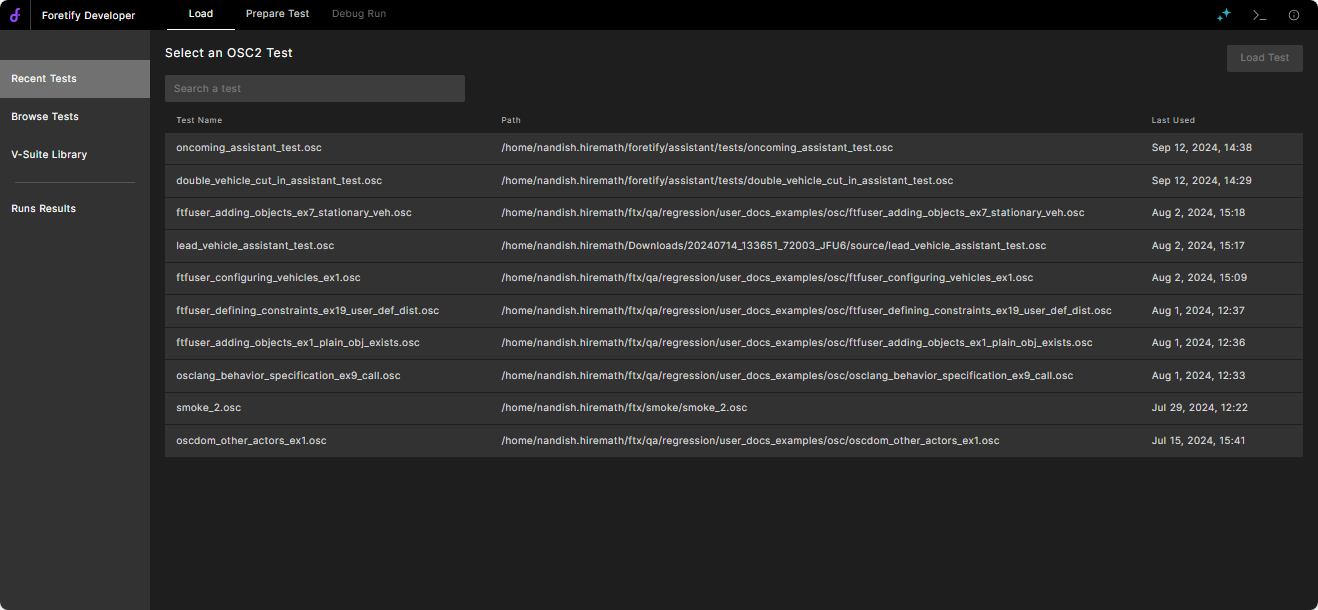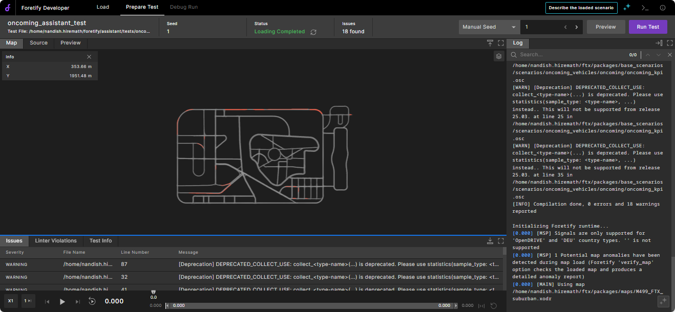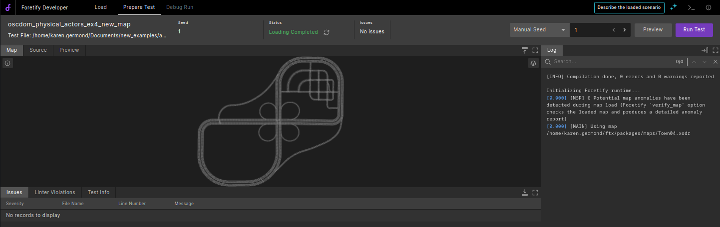 When the loading process completes, Foretify Developer displays the Prepare Test tab.