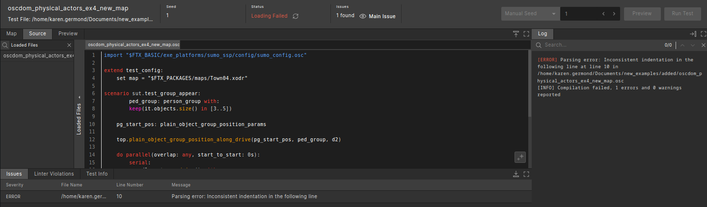 - Edit the source files for the test in your favorite editor to resolve load-time issues.