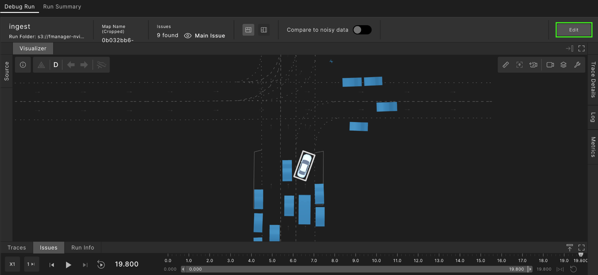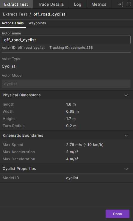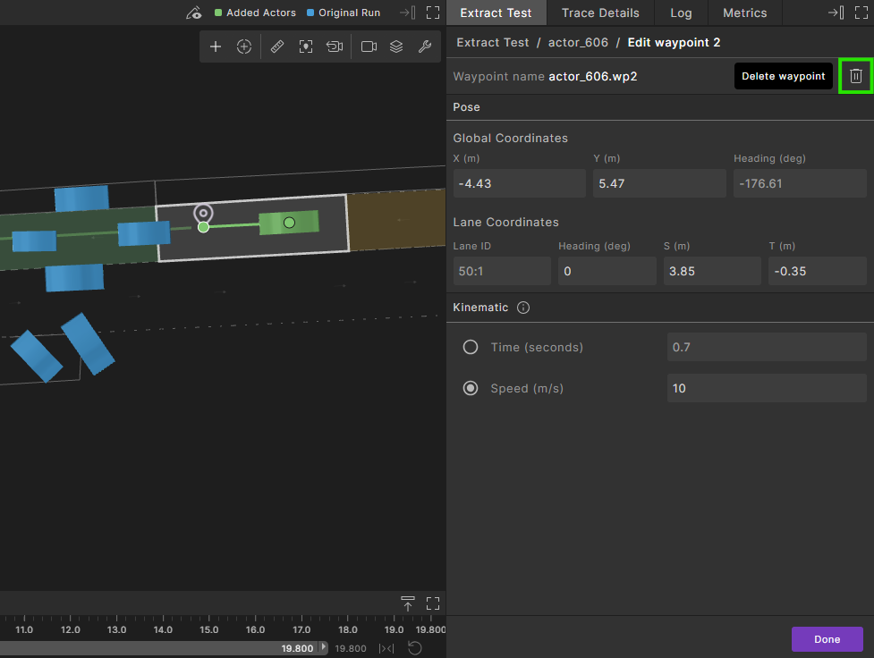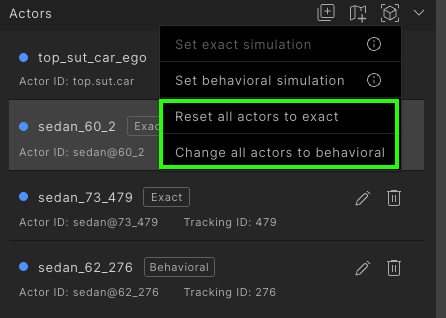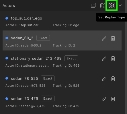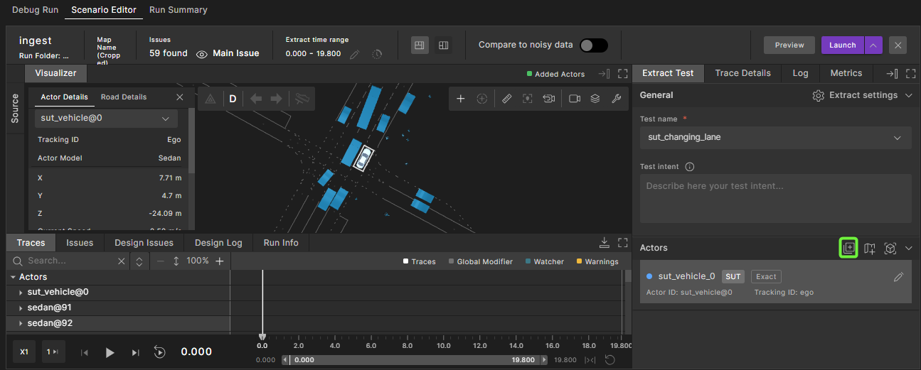 The Scenario Designer allows users to select and modify existing actors from the ingested run as well as add new synthetic actors to the scenario.