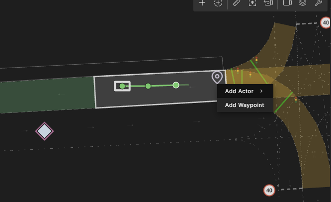 Right-click in the required location on the map, within the road boundaries, and select Add Actor.