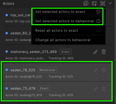 Select which actors from the Ingested Run to include in the new scenario. There are two ways to do this: