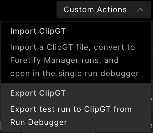 In the toolbar, click Custom Action and select Export ClipGT.