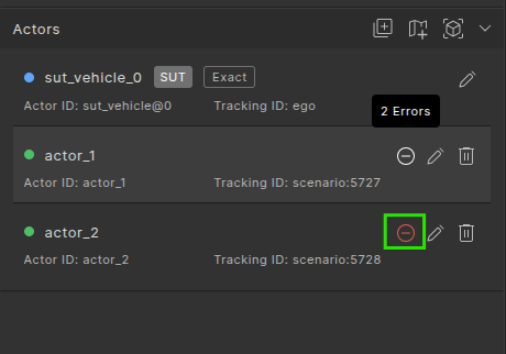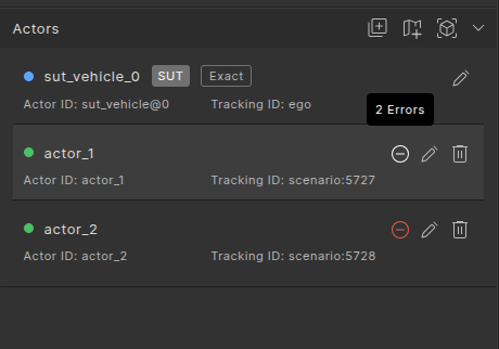 The table includes errors and warnings for both types of actors: