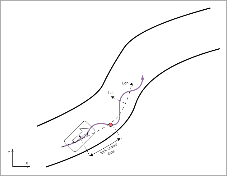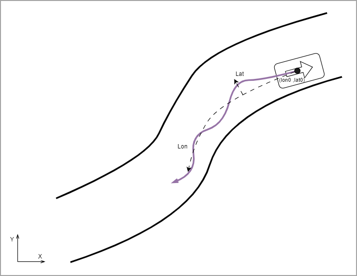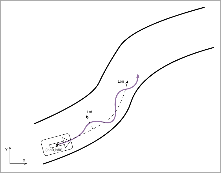 To ensure the continuity of the vehicle’s yaw angle and the smoothness of the lateral speed, the car's lateral speed in the preceding drive must be zero. This way, the vehicle coordinates are aligned to the direction of the lane coordinates at the start of the shape.