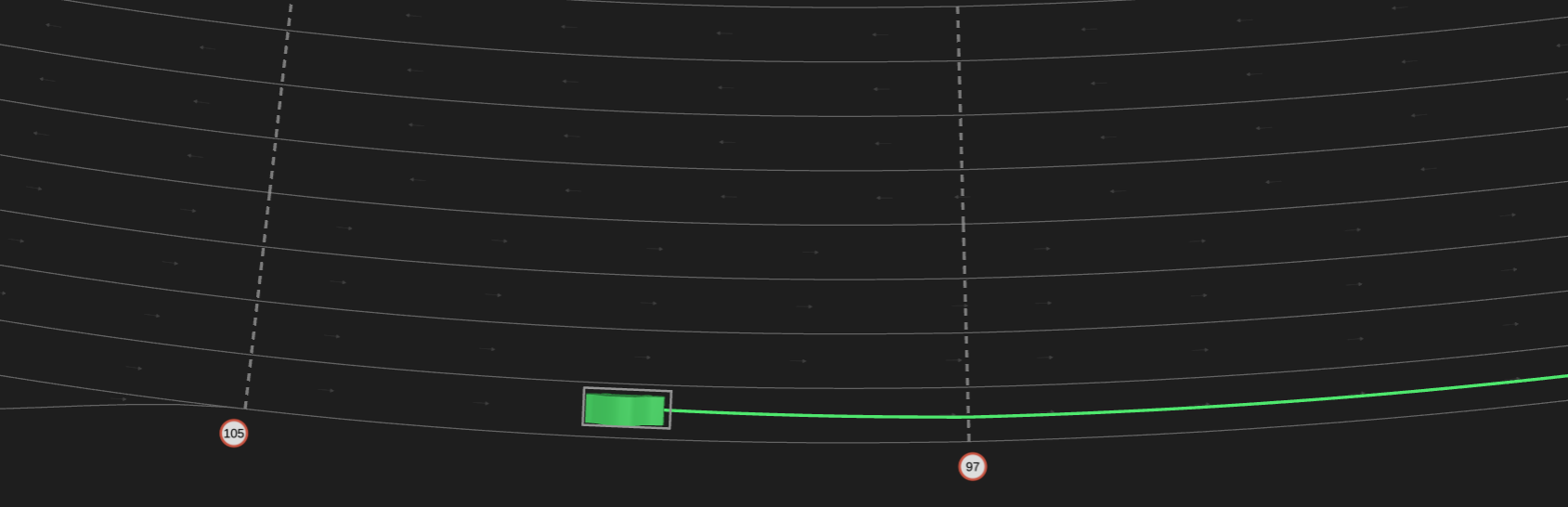 The road_curvature route element describes the curvature a one_way_road. Each occurrence is defined so that the curvature does not change by more than a factor of T (i.e. max_radius/min_radius <= T), and the curvature does not change direction. The value of T can be configured through config.map.road_curvature_threshold, with a default setting of 2.