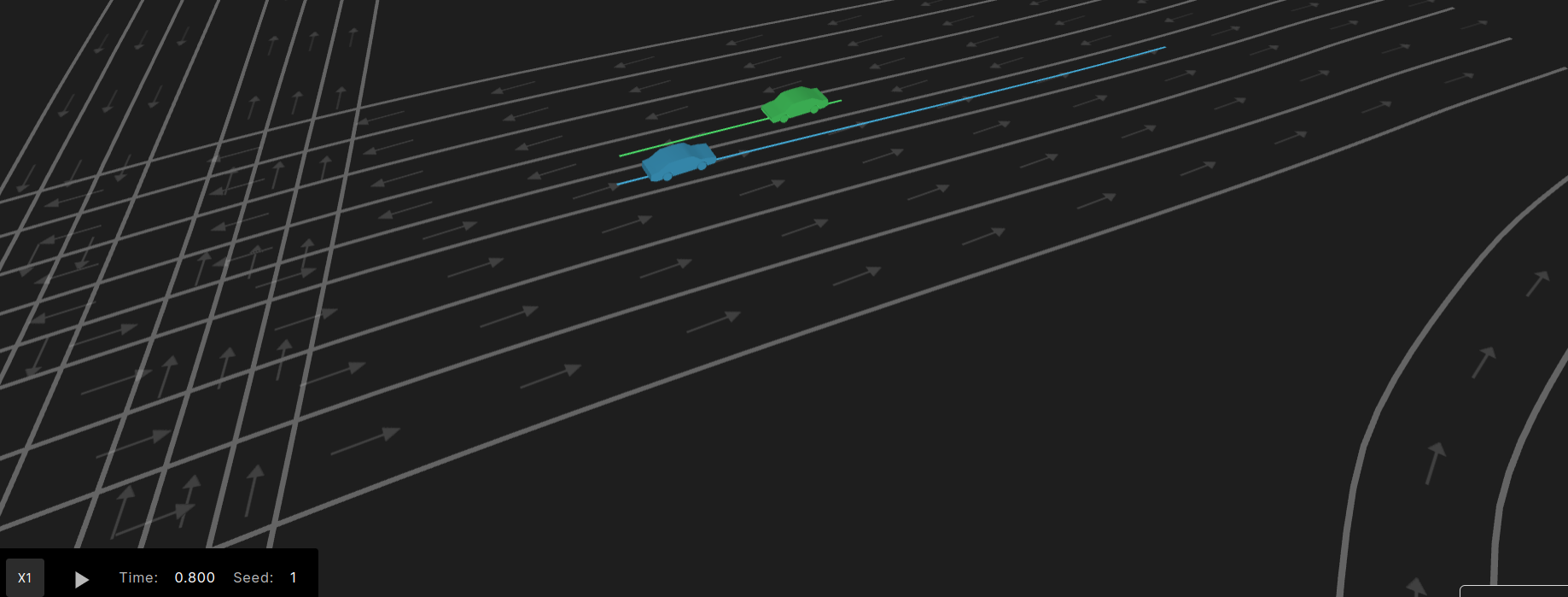 A possible result is illustrated in the following image. The SUT and its planned path are green, the NPC and its planned path are blue.