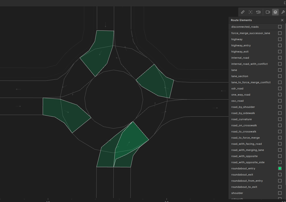 - By default the internal_road connecting R_n to R_o does not intersect with the internal_road connecting R_i to R_x, though this property can be modified by configuration variable top.config.map.roundabout_allow_entry_exit_conflict (default is false).