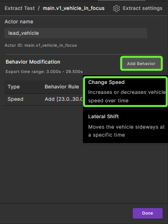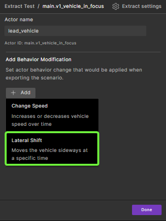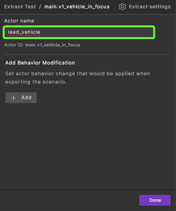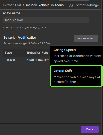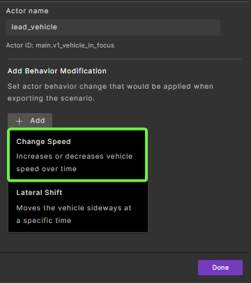 You can modify actors and their behavior in a Smart Replay scenario in the Foretify Manager GUI. You can also modify actor behavior using the Smart Replay scenario modifiers.