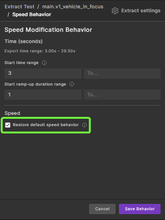 The Restore default speed behavior section appears only if a speed behavior exists for the specified actor.