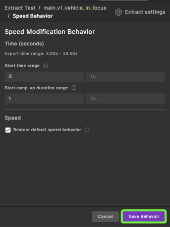 In the Speed Modification Behavior window, enter the required changes: